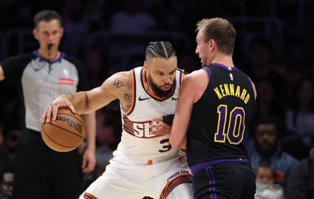 湖人还需要肯纳德在季后赛中也站出来。在东契奇和里夫斯缺阵的情况下,湖人想要闯过第一轮,必须挖掘角色球员的能量,光靠41岁的詹姆斯开启全力詹模式还是不够的。