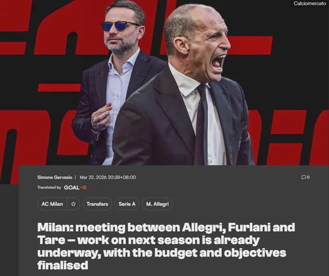意大利天空体育消息,阿莱格里和弗拉尼、塔雷在米兰总部进行了一次会谈,以探讨未来问题。