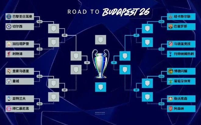 北京时间今晚19:00,2025-2026赛季欧冠1/8决赛抽签仪式在欧足联位于瑞士尼翁的总部进行。巴黎、切尔西、利物浦、皇马、曼城、拜仁齐聚上半区,下半区则集结了巴萨、马竞、阿森纳等强队。