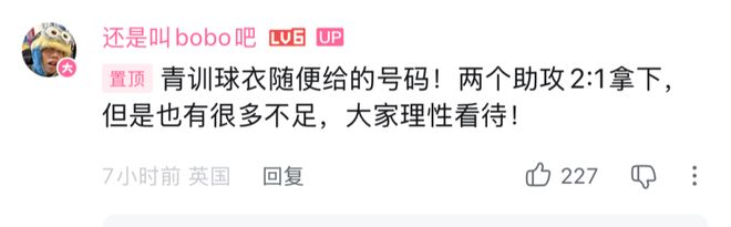 根据博主“还是叫bobo吧”的透露,徐彬本场身披10号球衣登场。需要说明的是,青训梯队球衣号码并无固定分配,10号为随机发放。