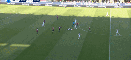 第45+1分钟,马伦助攻,艾纳维抢点破门,博洛尼亚0-2罗马