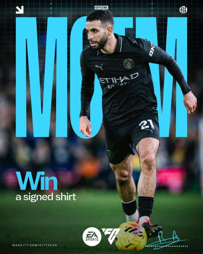 送出助攻,艾特-努里当选与利兹联一役曼城队内最佳球员